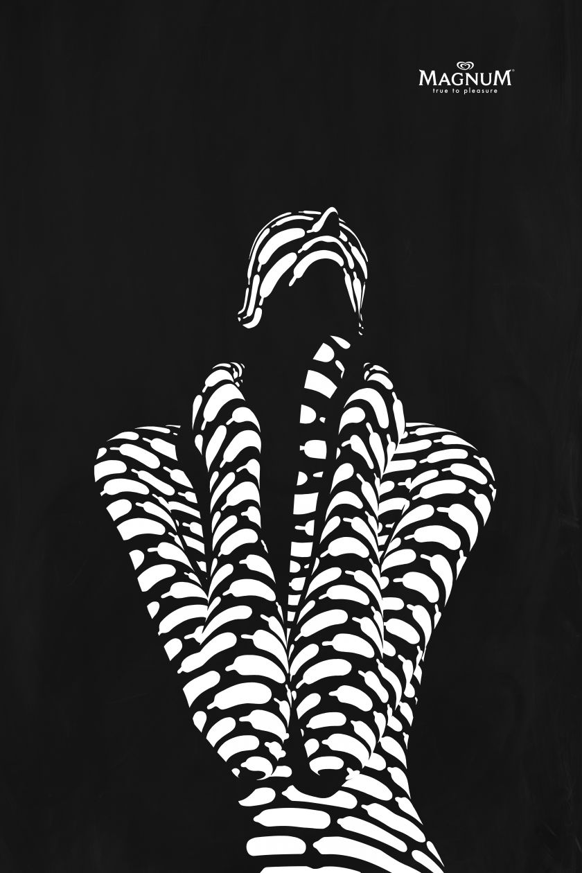 The illustrations – both for a mural and a series of posters – form part of a campaign by LOLA MullenLowe to inspire moments of pleasure where the iconic shape of the ice cream is seamlessly blended into the alluring black and white images.