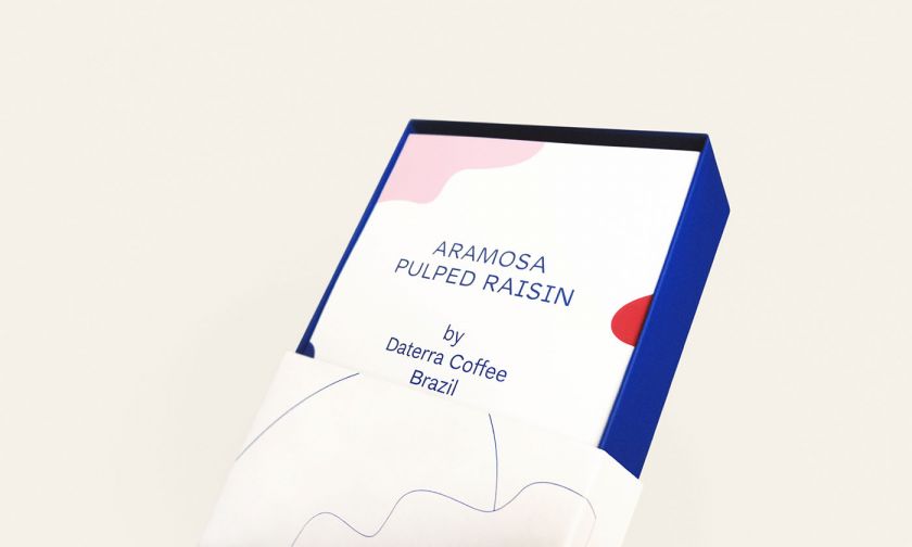 The final packaging aims to resemble a framed print. “The concept was inspired by the fact that coffee blending is often seen as an art form by coffee lovers,” Zabusova explains. “The abstract motif on the lid aims to reflect the coffee tasting notes of the Aramosa Pulped Raisin, a varietal chosen by European Coffee Trip from the Daterra Masterpiece collection known for unusual and unique blends.